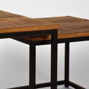 Matmenys: plotis x gylis x aukštis, 60 x 60 x 45 cmStalviršio storis išorėje: 30 mmSpalva: pilka.Medžiaga: mango medžio masyvas. Metalinis rėmas su grublėtomis siūlėmis.