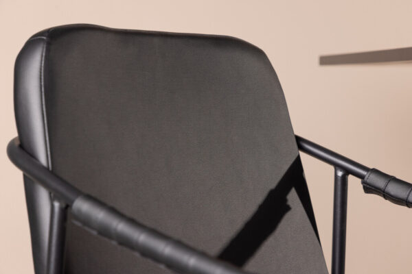 Moderni baro kėdė iš serijos TVIST, kuri puikiai dera šiuolaikiniuose namuose! Ši baro kėdė turi sustabdytą sėdynę ir visiškai aprengtą juodo PU dizainą su minimalistinėmis kėdžių kojomis ir integruotais juodo plieno porankiais. Pastatykite šalia baro ar baro stalo ir pakelkite savo patiekalus į naujas aukštumas su baro kėde, kuri greitai sukuria malonų akį traukiantį jūsų namuose!