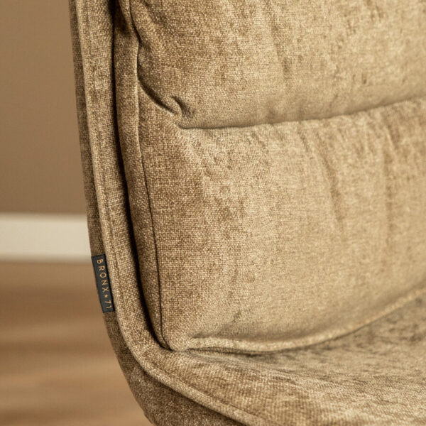 78 cmMedžiaga: poliesteris (tekstūruotas audinys)/ metalas.Audinys yra visiškai atsparus vandeniui ir lengvai valomas šiek tiek drėgnu skudurėliu. Audinys turi 50 000 Martindale balų. Tai reiškia, kad šis audinys yra patvarus.Spalva: ruda/pilka/kreminė.Kojos metalinės, dengtos juodai milteliniu būdu.Maksimali keliamoji galia: 120 kgTiekėjo šalis: OlandijaSvoris: 8 kg