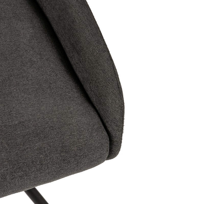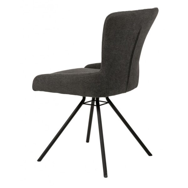 Matmenys: plotis x gylis x aukštis, 59 cm x 60 cm x 82 cm.Medžiaga: aksomas.Medžiaga: aksomas. Kojos - metalinės, dažytos milteliniu būdu.Kėdės sukasi 180 laipsnio kampu.Spalva: tamsiai pilka.