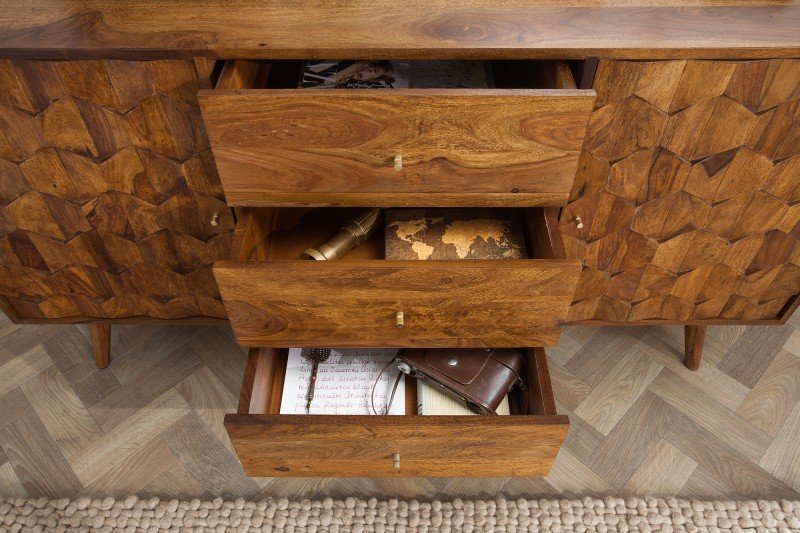 Rankų darbo akacijos masyvo komoda, lakuota.