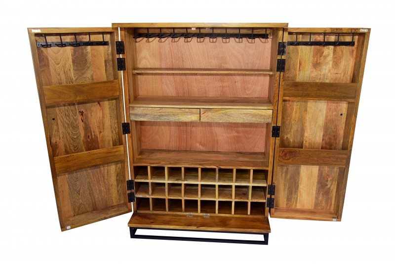 Ši spinta – baras yra nepaprasto dizaino ir iškart patraukia visų dėmesį. Spinta pagaminta iš tvirtos mango medienos. Spinta  – rankų darbo. Aukso spalvos metalinis rėmas suteikia ekstravagantišką išvaizdą ir užtikrina saugų stovą ant bet kokio paviršiaus.