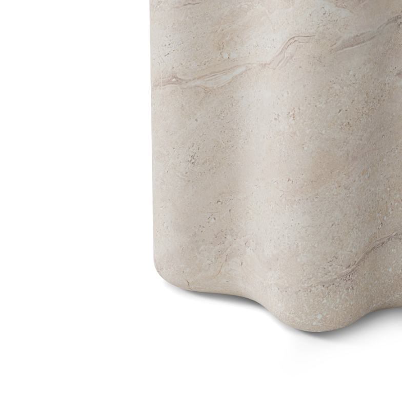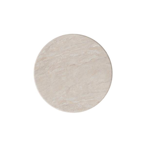Matmenys: ilgis x plotis x aukštis, 130/180 cm x 130 cm x 76 cm.Stalas didinas nuo 130 cm iki 180 cm.Medžiaga: plienas / stiklo keramika.Spalva: balta matinė(marmuro imitacija)/ rėmas juodas.Svoris: 120 kgApvalus baltas keramikinis stalas pagamintas Prancūzijoje. Marmurinė  matinė keramika yra 3 mm storio, klijuota ant 8 mm stiklo plokštės, todėl  yra atsparus karščiui, įbrėžimams.  Rafinuotos stalo kojos pagamintos iš juodai matinio lakuoto plieno, kuris suteikia elegantišką išvaizdą, bei leidžia patogiai laikyti kojas.