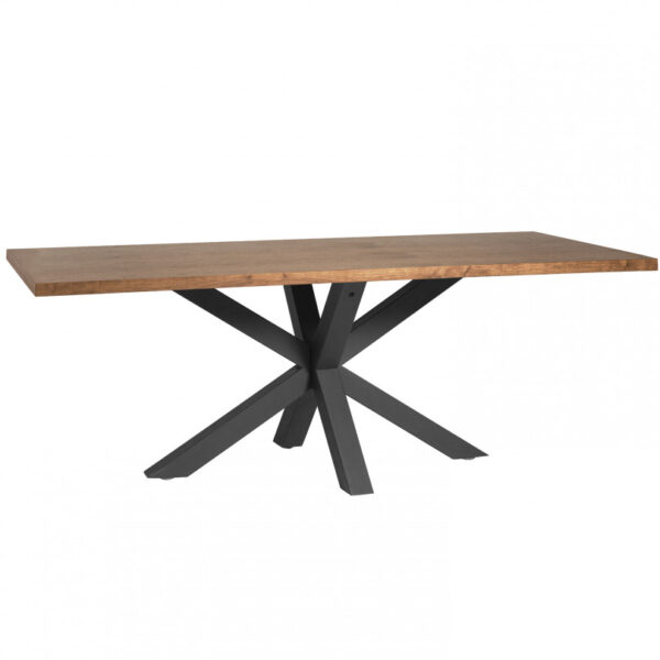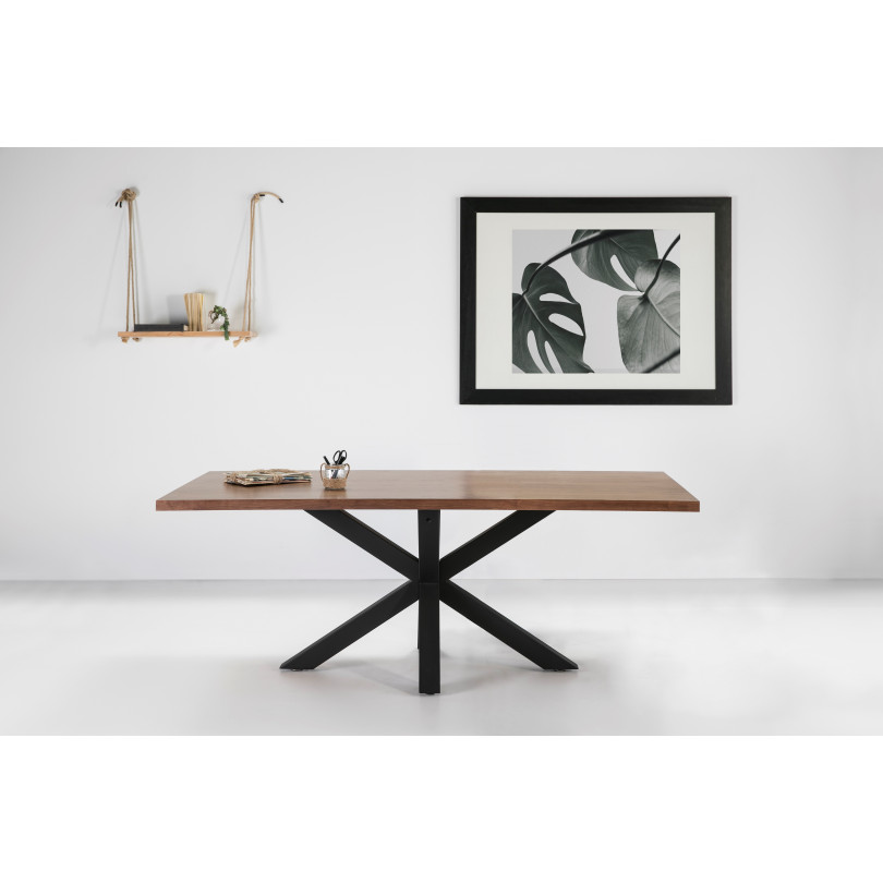 Matmenys: ilgis x plotis x aukštis,180 cm x 90 cm x 76 cm.200 cm x 90 cm x 76 cm.220 cm x 90 cm x 76 cm.Natūralios formos medžio kraštas.Medžiaga: medžio masyvas, klijuotas, lakuotas.Rėmas: metalinis. dažytas milteliniu būdu.Stalviršio storis: 35mm.Spalva: ruda/juoda.