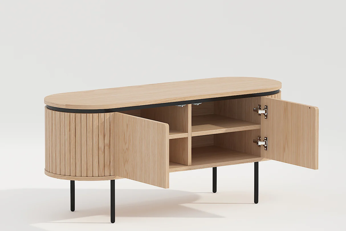 Matmenys: plotis x gylis x aukštis, 140 cm x 35 cm x 45 cm.Medžiaga: akacijos medžio masyvas / lakuotas / klijuotas.Spalva: rudaTiekėjo šalis: Vokietija