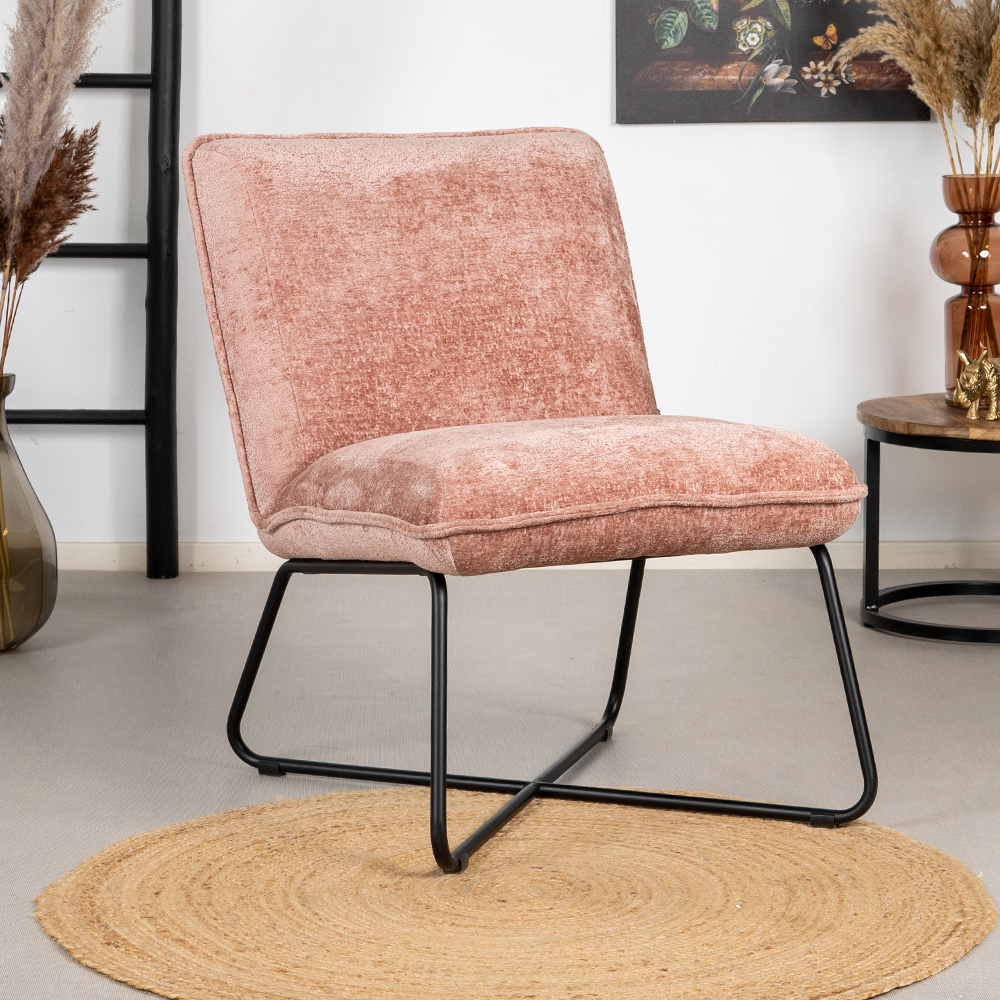 Fotelis pagamintas iš šinilinio audinio, minkštas ir patigus.Šinilas yra pagamintas iš šinilinių verpalų, sudarytų iš poliesterio. Dėl subtilaus blizgesio audinys atrodo prabangiai ir prašmatniai. Šinilinio audinio savybė yra ta, kad dėl švelnaus blizgesio jis primena aksomą. Be to, šenilą lengva prižiūrėti. Audinys turi 100 000 Martindale balų, o tai reiškia, kad fotelis yra ypač patvarus