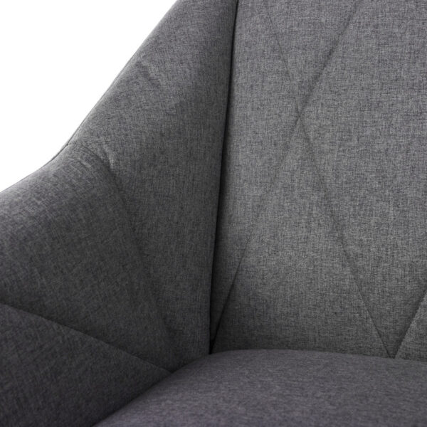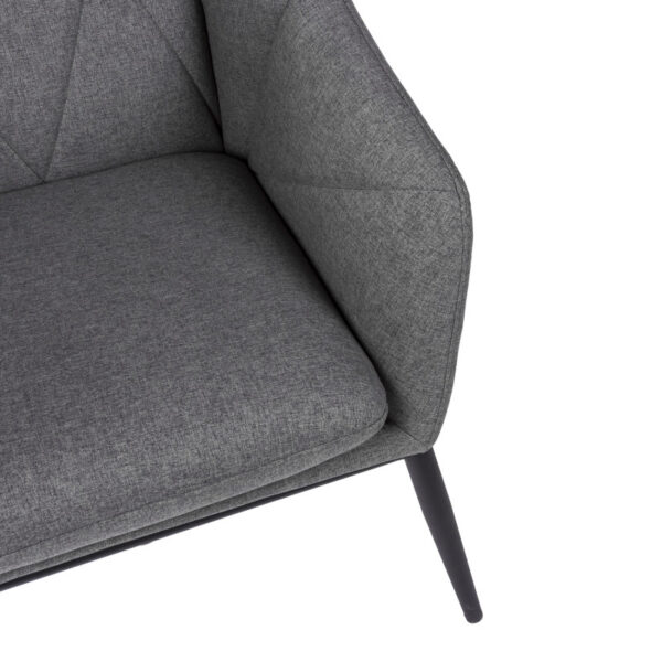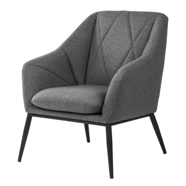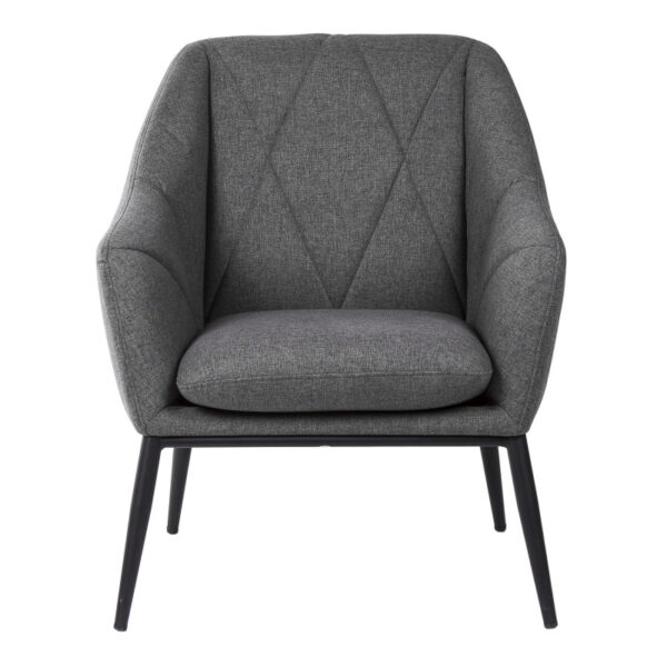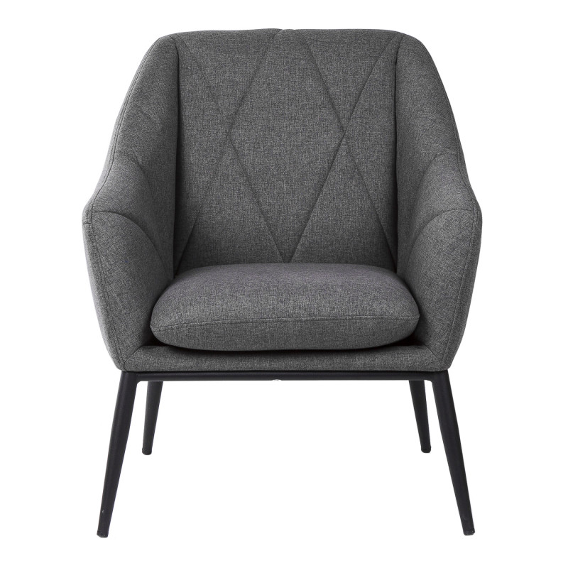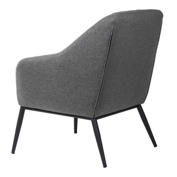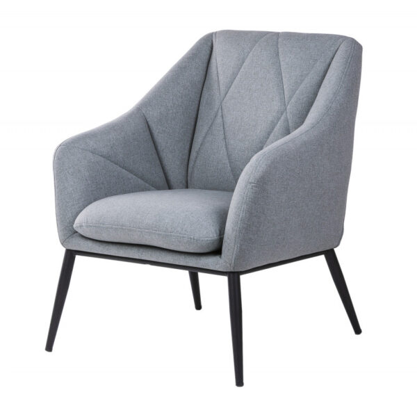 Minkštas fotelis pagamintas iš metalinio rėmo, šiek tiek pasvirusiosmis kojomis iš matinio juodo lakuoto metalo, paminkštinta sėdynė ir atlošas, užpildytas „HR eliocel“ putplasčiu ir aptrauktas 100% poliesterio audiniu.