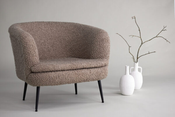 Pakelkite stiliaus lygį savo namuose su šiuo skoningu foteliu, kuris daro įspūdį! Nordkoster yra svajonių fotelis, sukurtas visiškai atsižvelgiant į tendencijas. Pagaminta iš tamsiai smėlio spalvos švelnaus meškiuko audinio, kuris suteikia kambariui jaukų ir šiltą įspūdį. Kojos stilingos siauros ir lengvai platėjančios iš juodo plieno. Fotelis yra puikus stiliaus ir komforto derinys. Pastatykite šalia sofų grupės ar pasjanso skaitymo kampelyje – čia gausite naują mėgstamiausią buityje!