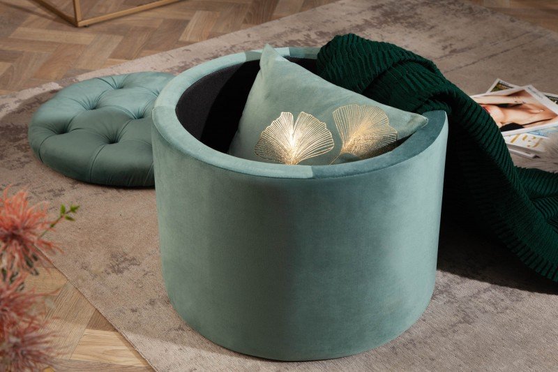 Švelnus ir skoningai žėrintis aksomo pufas, Jūsų stiligiems namams.