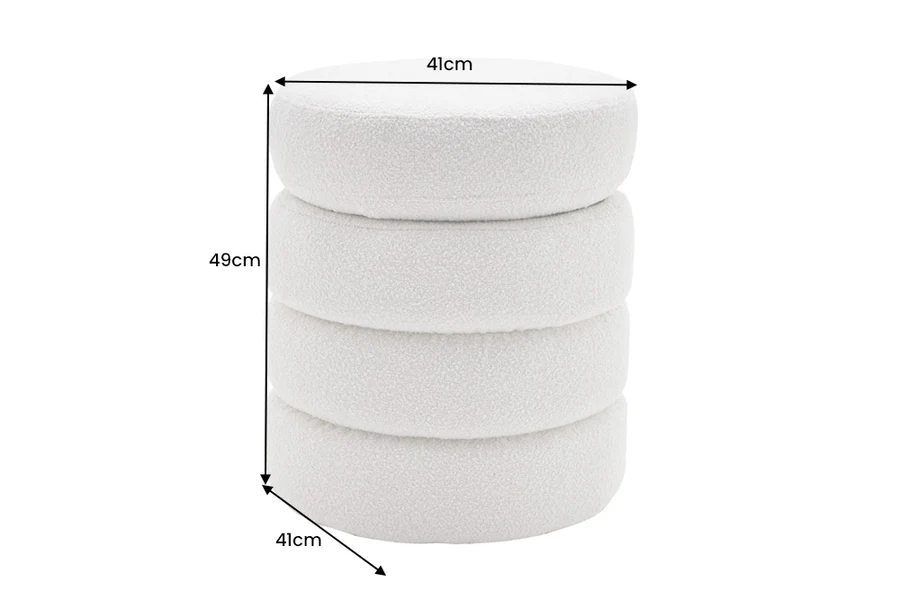 Šiek tiek blizgantis aksomas elegantiškas, bet tuo pačiu ir traukiantis akį, dėl Česterfieldo siuvinėjimo Pufas/daiktadėžė tinkamas ir prisėsti ir susidėti daiktus.Spalva: baltaMatmenys: Ø 50 x 41 cm.Sudėtis: aksomas (100% poliesteris).
