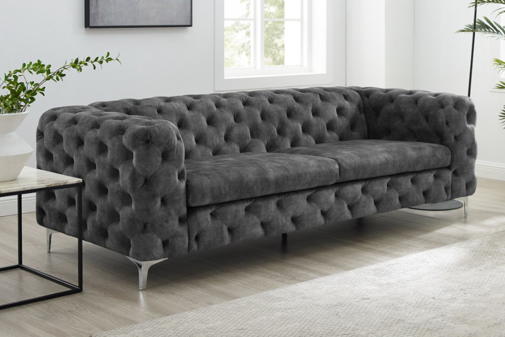 Matmenys: plotis x gylis x aukštis, 220 cm x 90 cm x 85 cm.Atlošo aukštis: 40 cm.Medžiaga: aksomas.Spalva: pilka.