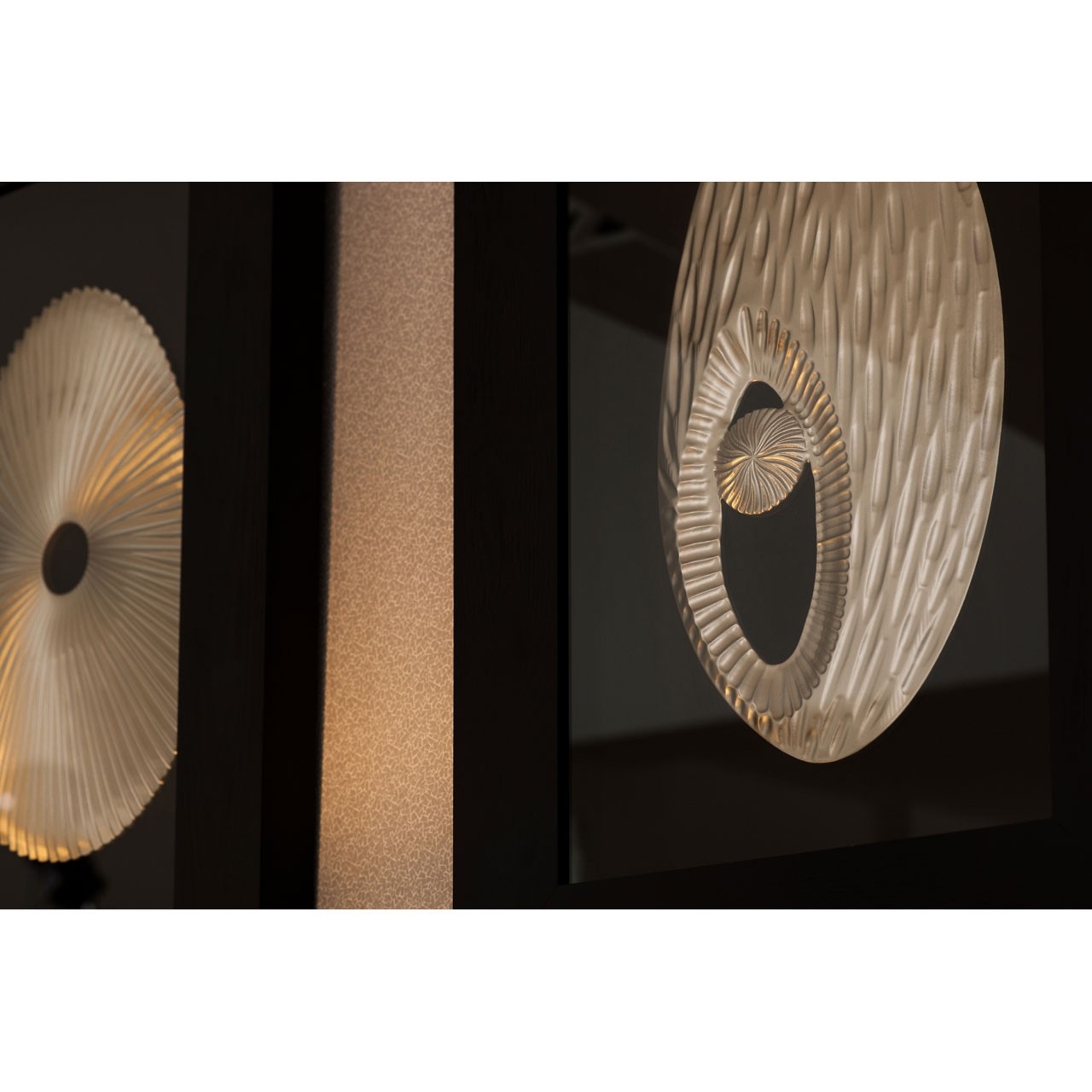 4-ių dalių sienos dekoracija "Agate", su pusbrangiu agato akmeniu.Matmenys: plotis x gylis x aukštis, 30 x 5 x 30 cmSpalva: pilka.Medžiaga: MDF, agato akmenys ,stiklas.Svoris: 7,5 kg