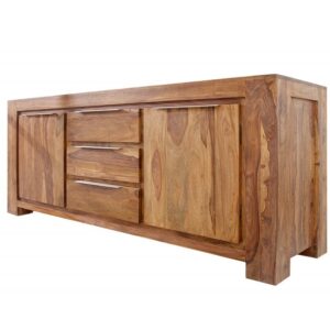 Matmenys: plotis x gylis x aukštis, 175 cm x 50 cm x 80 cm.Stalčiai: 43 cm x 11 cm x 44 cm.Viršutinis skyrius: 54 cm x 46 cm x 35 cm Apatinis skyrius: 54 cm x 46 cm x 24 cm Durys: 56 cm x 2,5 cm x 60cm Medžiaga: Sheesham medžio masyvas , lakuotas. Šlifuotos aliuminio rankenos.Spalva: ruda