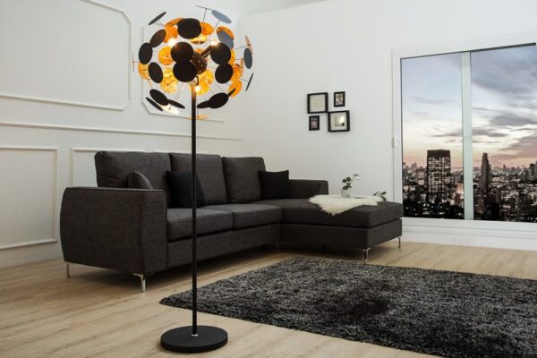 Matmenys: plotis x gylis x aukštis: 40 x 40 x 140 cmSpalva: gintrinė/aukso.Medžiaga: stiklas/metalas.Apšvietimo taškai: 1.E27 jungtis, kurios didžiausia galia yra 40 W.Laido ilgis 180 cm.