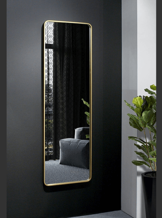 Tai gražus veidrodis ploname auksiniame rėme su užapvalintais kampais. Universalus modelis, kuris tiks prie interjero, dekoruoto skandinavišku stiliumi, taip pat modernus ar eklektiškas.