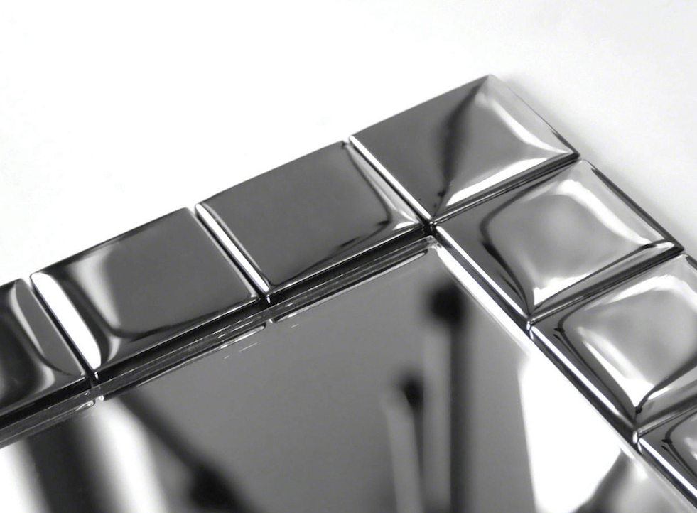 Rėmas pagamintas iš stiklinių veidrodinių akmenų (maždaug 48 × 48 mm).
